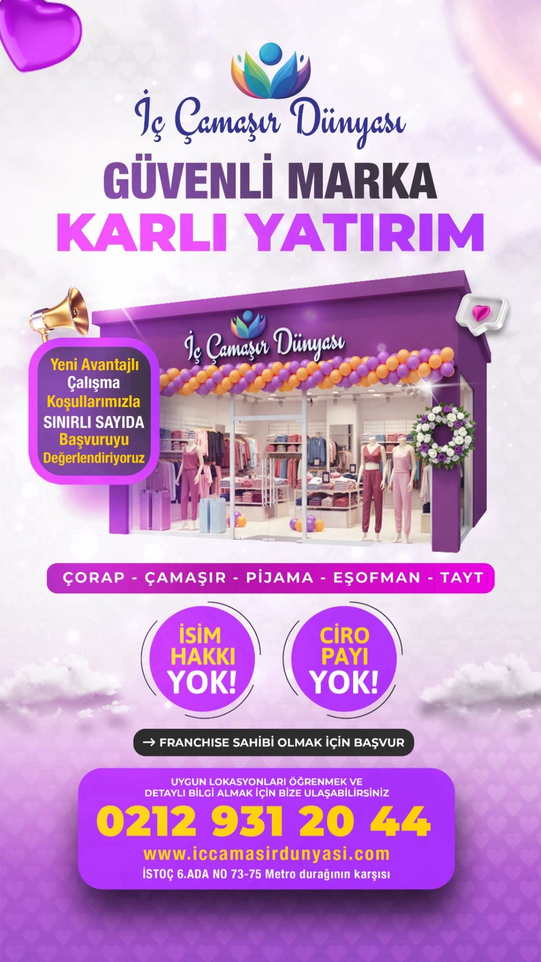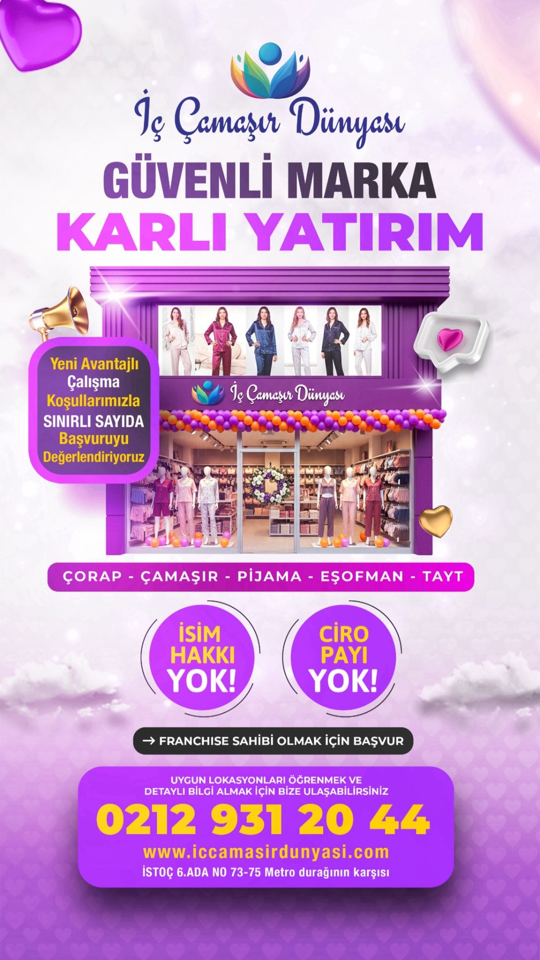 Merhaba, iç çamaşır dünyası web sitemize hoş geldiniz! Biz, İstanbul Istoç'ta bulunan bir toptan iç çamaşır, çorap ve pijama mağazasıyız.
